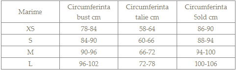 DIMENSIUNI SI MĂSURI: tebelul de marimi este orientativ, dimensiunile pot varia 1-2 cm in functie de model/croi.